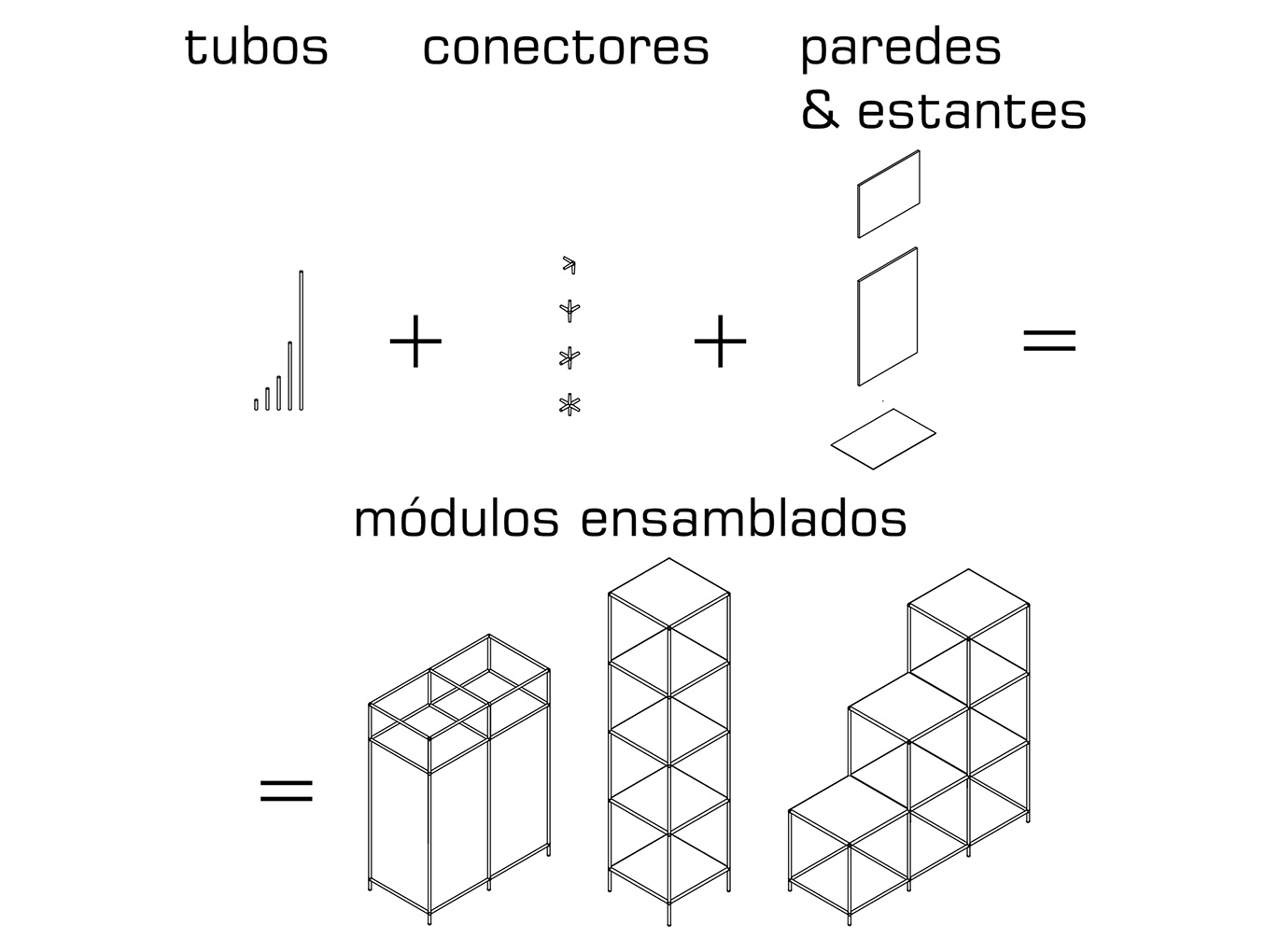 ABC es un sistema de mobiliario modular a base de conectores de marca abstracta en material polímero que funcionan como unión de tubos metálicos de 1/2 pulgada. Su estructura es liviana, versátil y atractiva. Se puede fácilmente desarmar y transportar. De esta forma, este sistema satisface las necesidades dinámicas en ferias y tiendas, en especial para productos de joyería, artesanía, promocionales, etc.