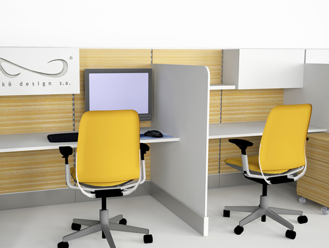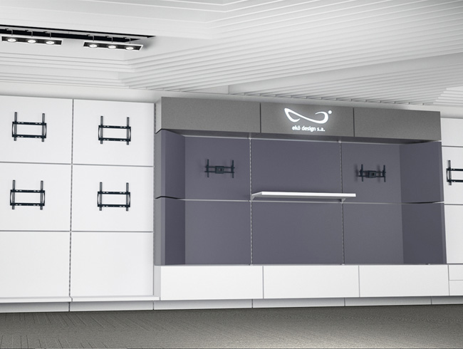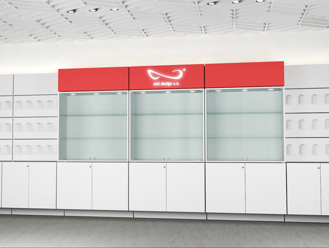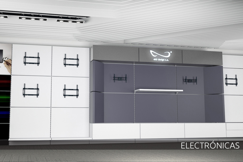 Los espacios diseñados por la empresa que se presentan a continuación son una muestra de la integración de los componentes modulares de ekõsystem para crear de forma sistémica diversos ambientes comerciales personalizados en conjunto con todos los elementos complementarios de acabados, instalaciones electromecánicas y demás mobiliario.