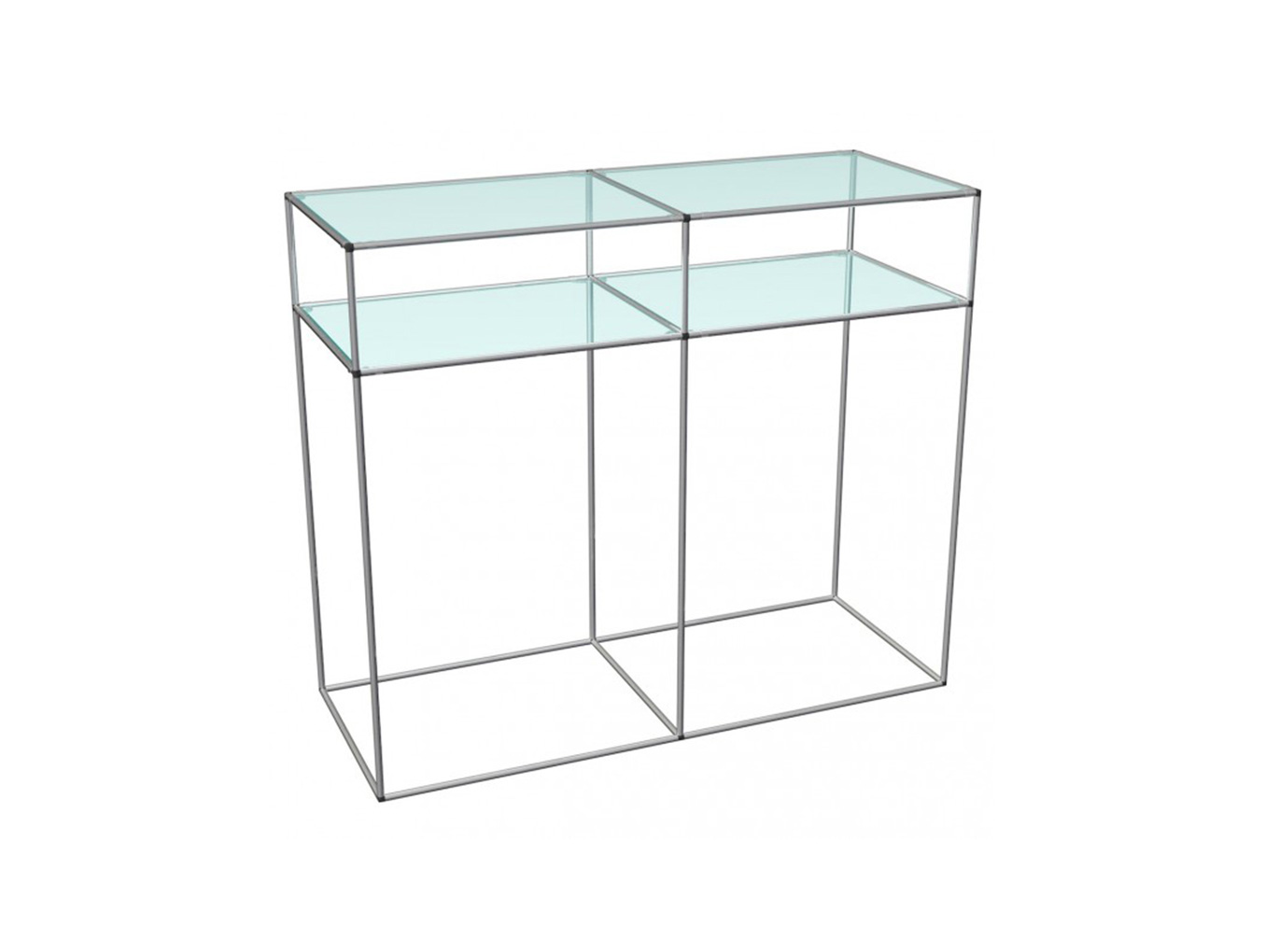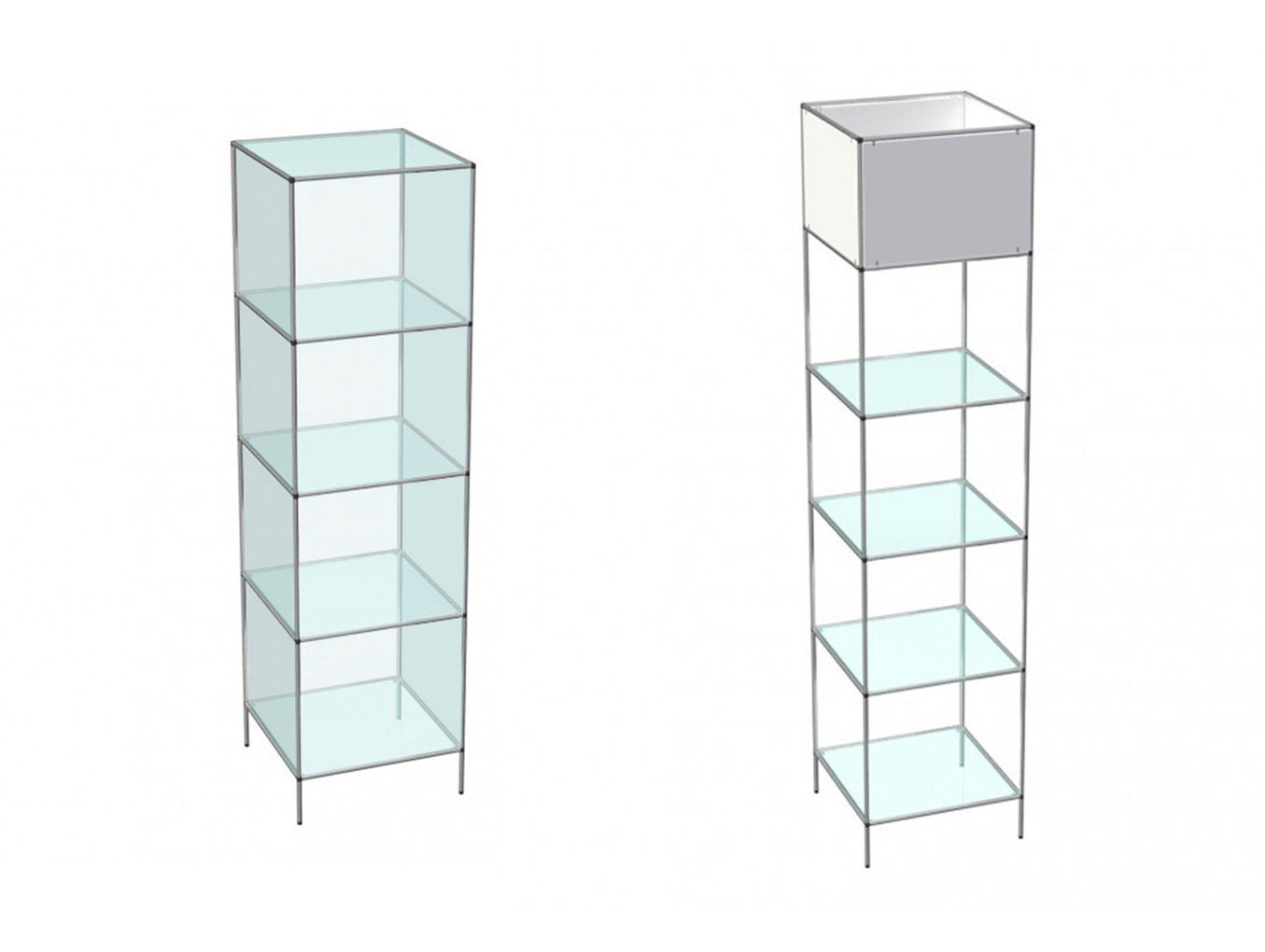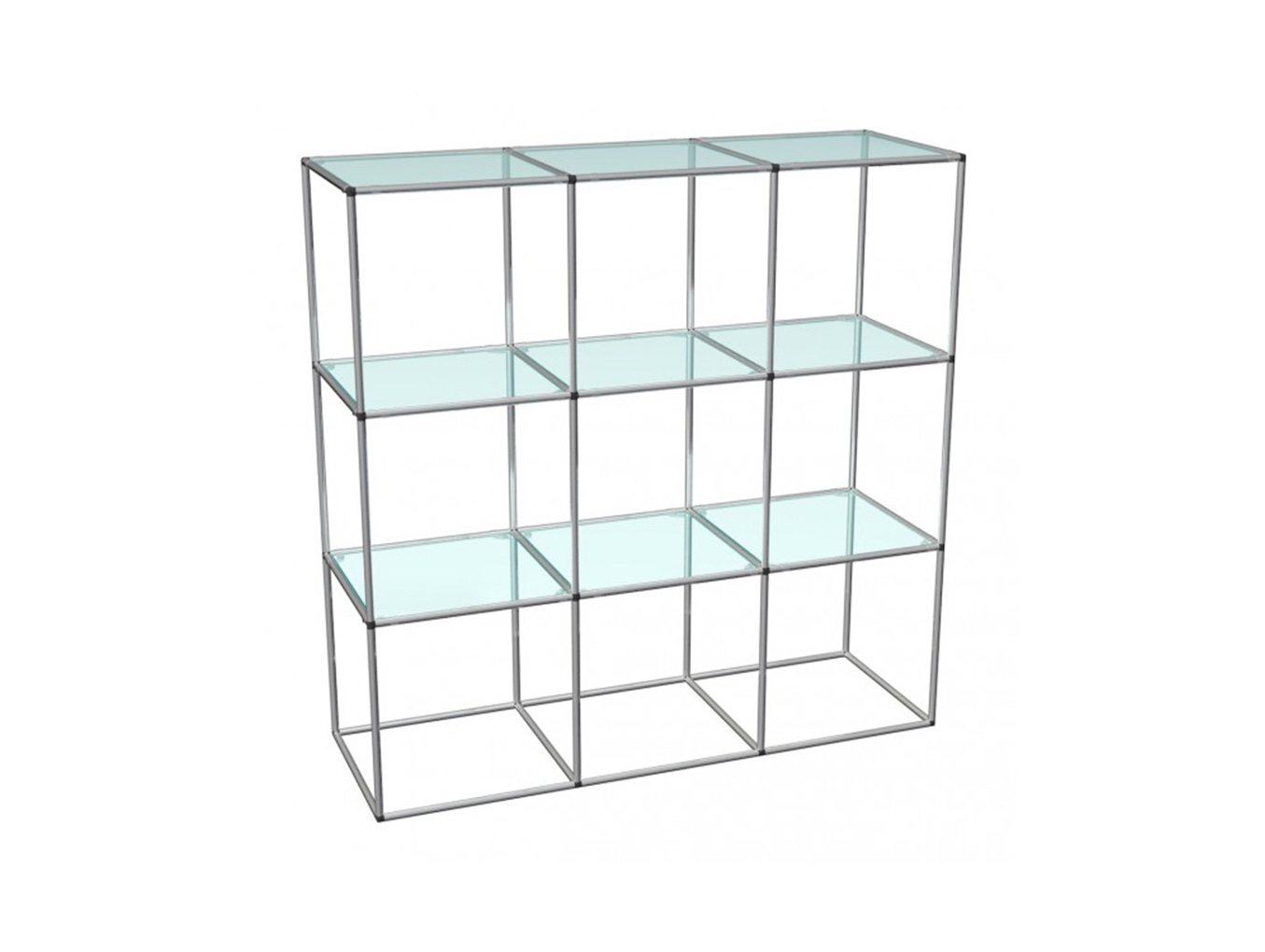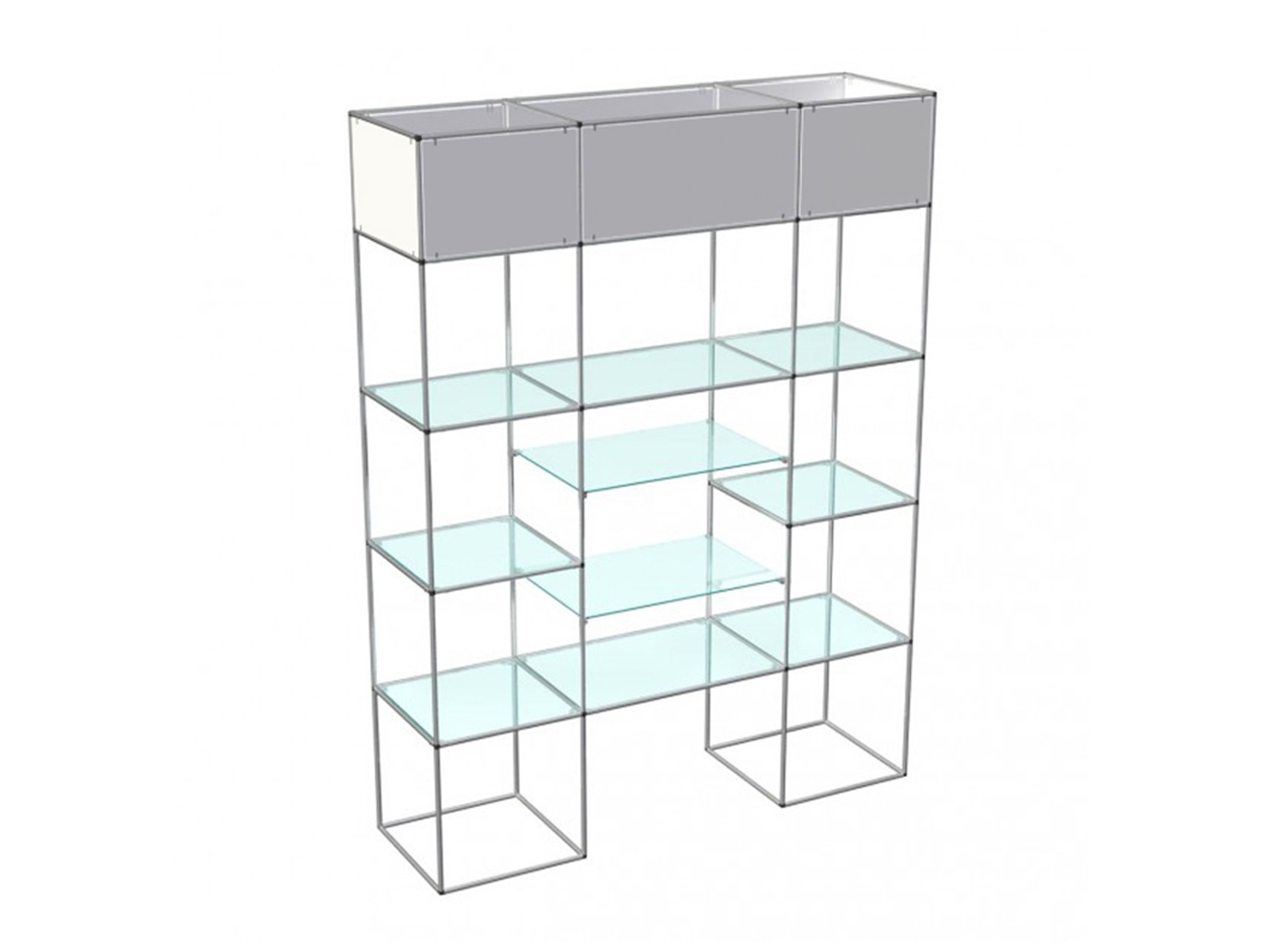 El sistema incluye accesorios para el soporte de gráficas así como de estantes y paredes que pueden ser de diversos materiales, incluyendo los transparentes para crear vitrinas. Los conectores son de color negro mate y los tubos están disponibles en color aluminio natural, negro mate e imitación de madera. Colores personalizados para la tubería son posibles en acabado de pintura en polvo.