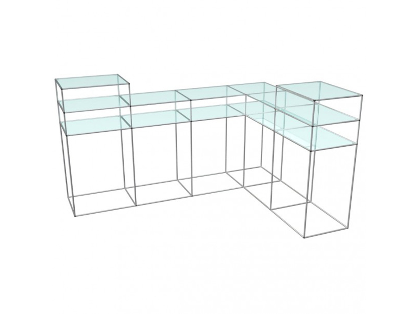 ABC es un sistema de mobiliario modular a base de conectores de marca abstracta en material polímero que funcionan como unión de tubos metálicos de 1/2 pulgada. Su estructura es liviana, versátil y atractiva. Se puede fácilmente desarmar y transportar. De esta forma, este sistema satisface las necesidades dinámicas en ferias y tiendas, en especial para productos de joyería, artesanía, promocionales, etc.